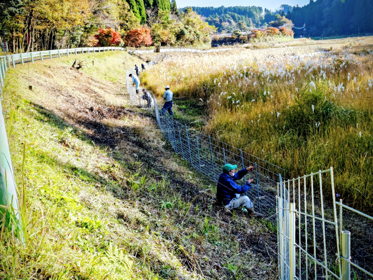 午前中は予定通り進んで、余裕の😉。ところが、午後のワイヤーメッシュ設置作業は想定以上の大変な作業になり、笑い声も聞こえなくなりました。午後4時近くまで続き、さすがの村人達もくたくた状態でした。お疲れ様でした。お世話になりました。守る会のkanadeさん、完全に一人前。名誉村民に認定です。お疲れ様。