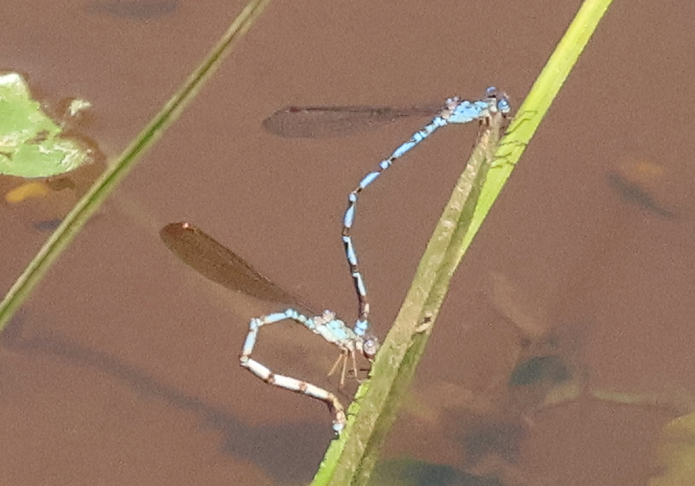 ホソミオツネントンボは、雌雄が連結して抽水植物の茎に産卵します。