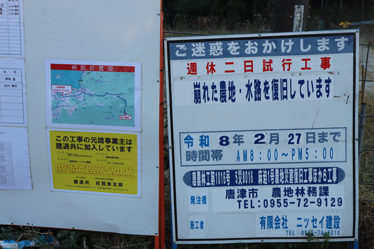 カテゴリー 今日の樫原 やっと復旧工事 投稿者 作成者: 管理人 投稿日 2025年12月13日 2023年7月10日豪雨は七山地域に甚大な被害をもたらしました。湿地Ⅶ横の水路も基盤がえぐられて水田の土手が10m近く崩れ落ちていました。その復旧工事の順番がやっと回ってきたのでしょう。工事が始まりました。それでも、まだ手つかずの災害現場も各所にあります。どれだけ時間がかかるのでしょうか。あきらめて、復旧を止める人もいるとか。高齢者にとっては、復旧するか、止めるか、悩ましい現場もあるようです。 \ 最新情報をチェック / ← 浚渫作業でコラボ → 宙君の動物王国 7
