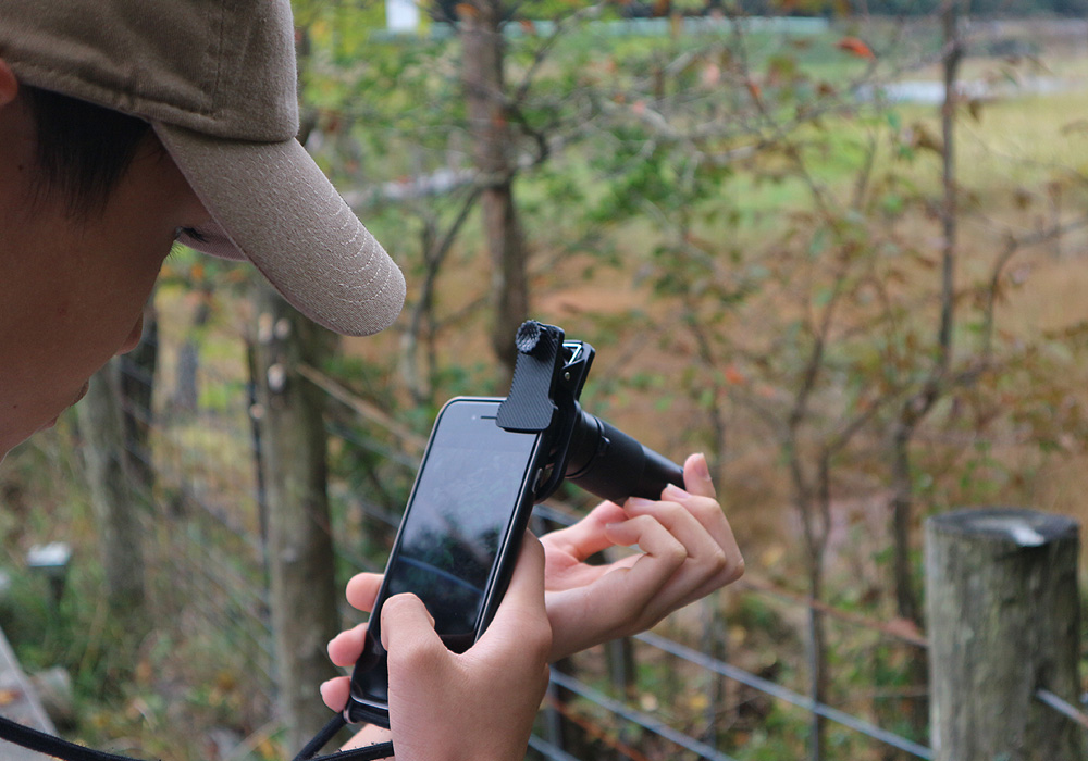 高校1年生で始めた生き物の撮影はスマホで始まり、その後、いくつかのアタッチメントを取り付けて工夫していました。 ピント合わせがなかなか難しそうでしたが、ネイチャー甲子園動物部門で全国三位。