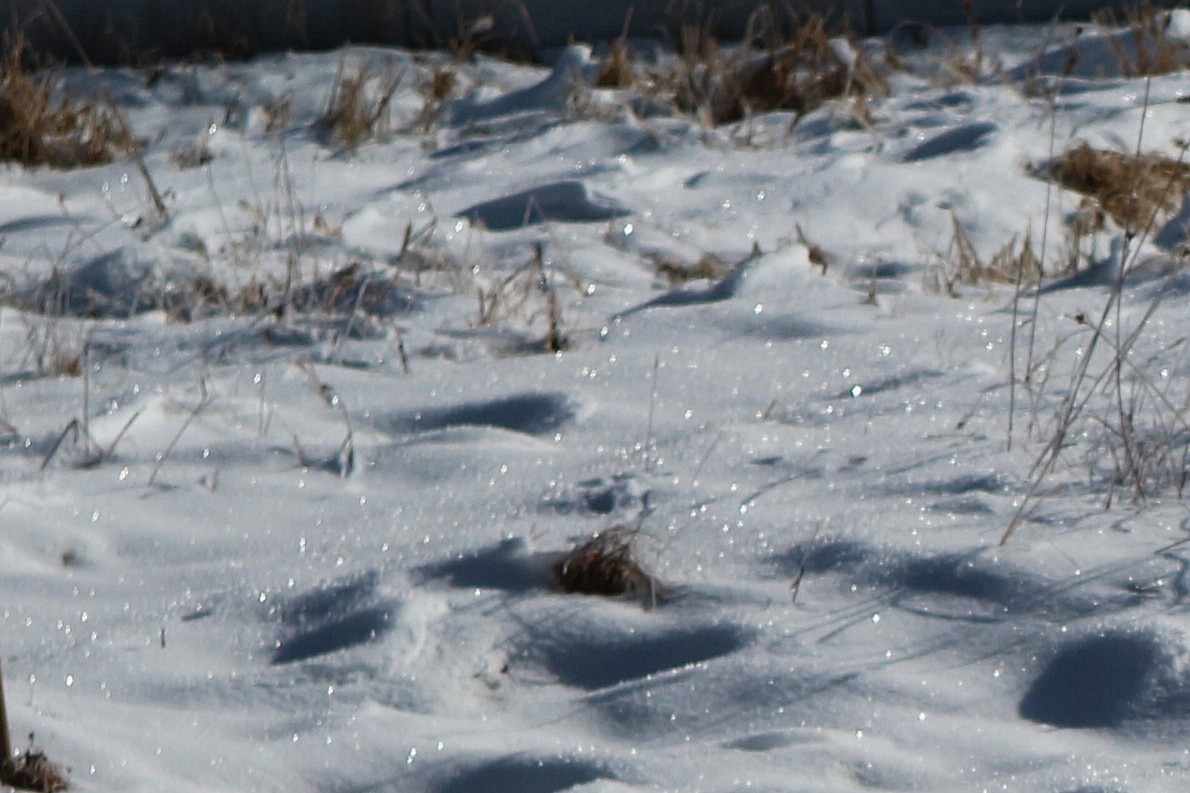 月曜日の朝は晴れて放射冷却があり、-6℃~-10℃にまで冷え込んだようです。湿原をまわると、朝の日差しが斜めから当たって、雪面がキラキラ輝いて綺麗でした。ダイヤモンドダスト(管理人は映像でしか見たことがありませんが)よりも、こっちの方がずっと綺麗なんじゃ?と思ってしまいました。