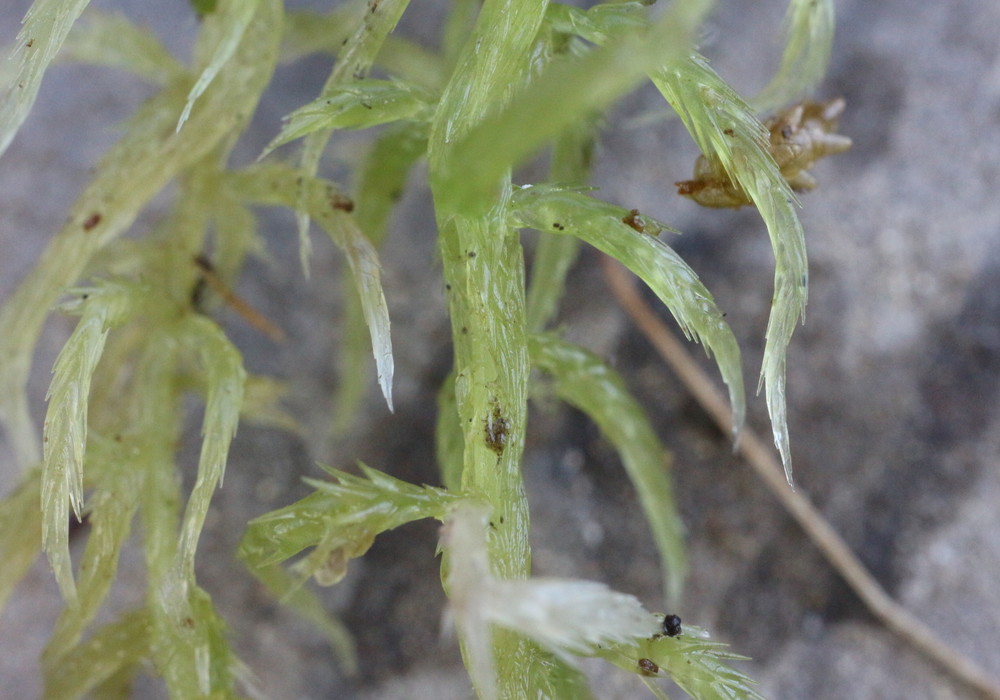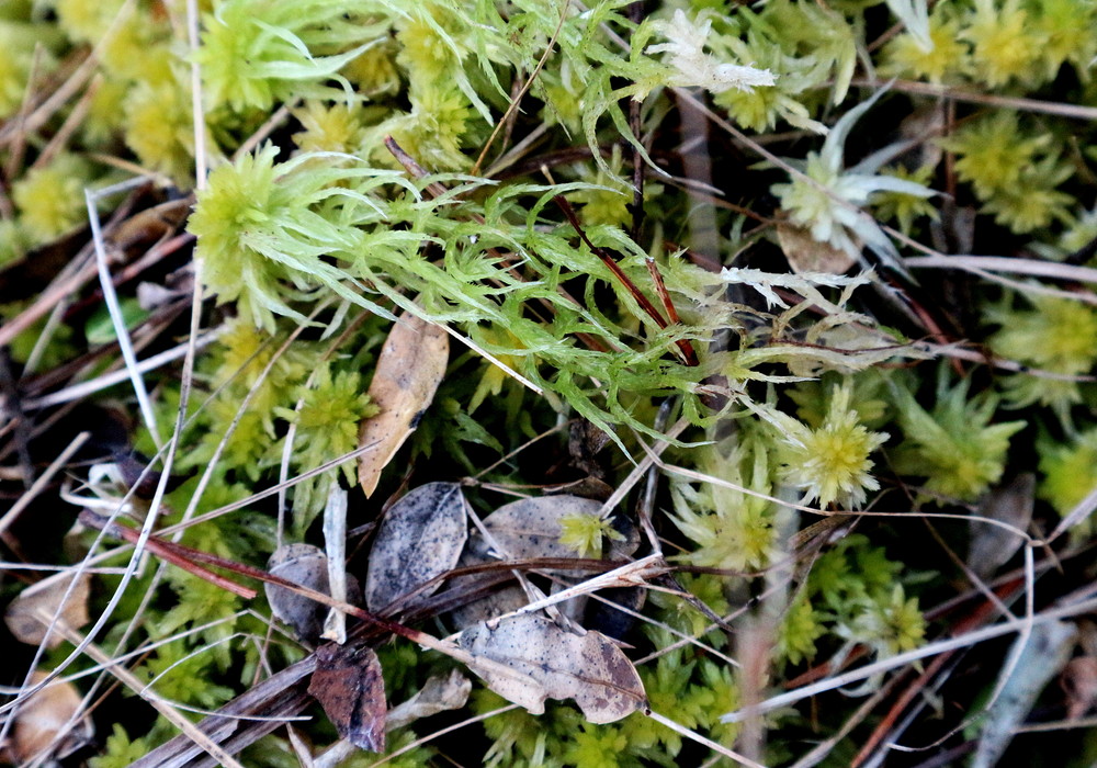 湿原には1箇所だけ、オオミズゴケと混生する状態で、少し小型のミズゴケが生育しています。コケは苦手で、これまでほったらかし。多分、ヒメミズゴケかホソバミズゴケだろうと思っていたのですが、意を決して少し深入りしてみました。顕微鏡を持ちませんので、手持ちのカメラのマクロ機能を使って、茎葉を拡大してみました。先端に「ささくれ」はなく、ヒメミズゴケ、ホソバミズゴケのどちらにも当てはまりません。枝や枝葉の形などから総合判断すると「ハリミズゴケ」に行き着きます。佐賀県では多分、未記録種のようで、自分の同定に「ほんとかいな?」という状態です。どなたか詳しい方、ご教示いただければ幸いです。